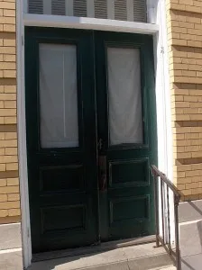 On one trip to Lenox, I went to the Hagyard Building with a mission. My cousin Denise (whom I refer to as my Aunt Denise) told me that the front door of the Hagyard Building still bore the doorbell nameplates of Bernard Flanders and John Coughlin, my grandfather and great-uncle, respectively. She asked whether I would try to get them off the building, and of course I agreed.