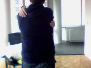 These are the hugs where one person is really giving a hug and the other person is trying to touch as few molecules of the hugger’s body as possible. These hugs seem to be motivated by a belief that hugging is what is socially required (particularly in certain political/activist/liberal/progressive circles, I’ve noticed) juxtaposed against the person’s strong desire to not be hugged. The weird thing about these hugs is that it’s most often the person who doesn’t want to be physically affectionate who initiates the hug. Again, I think as a sort of expected social interaction.