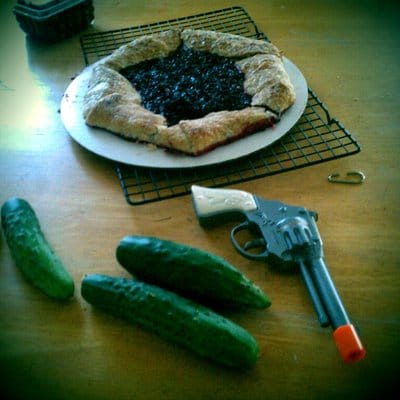 After all that was finished, I walked over to Carrie’s house to spend time with Carrie and David. We ate more of the yummy pasta with lamb’s quarters (not what you think) from last night, and I also had a yummy blackberry galette they’d made.