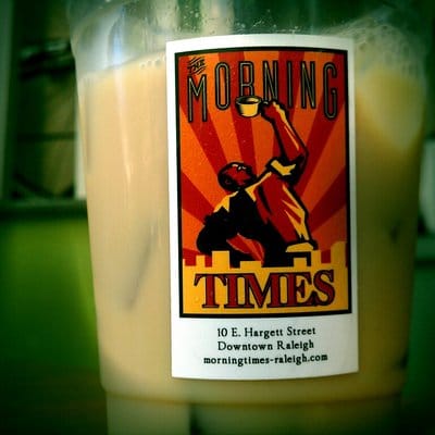 One interesting note: A company called Empire Property owns and controls most of downtown Raleigh. According to David, the founder of Empire was the son or grandson (I think) of Mao Zedong’s personal physician, which is where the money came from to start the company. David said Empire started buying up property in downtown Raleigh when no one at all was buying downtown. He gave them credit for some of Raleigh’s revival. They’re now sitting on a lot of expensive property. On some blocks, if you leave the coffee shop and walk down the street to the restaurant or across the street to the offices, you’ll never leave property owned by Empire. The best part of all? Apparently on the top floor of Empire’s headquarters there are enormous portraits of Mao. Irony, anyone? In fact, I thought I detected a bit of the Cultural Revolution in the logo of this coffee shop, also owned by Empire: