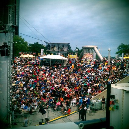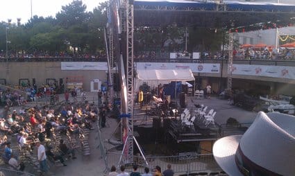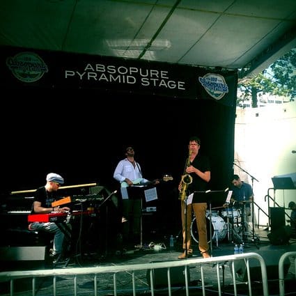 David Binney has been a guest on my show, and he fielded a band that made me feel like I was back home at the 55 Bar — except with more sunshine. Binney was joined by Jacob Sacks on piano, Eivind Opsvik on bass and Dan Weiss on drums, a quartet of New York’s finest. Binney is one of those rare soloists who can bring a crowd shouting to its feet. The whole band sounded inspired. Toward the end of the set they were joined by saxophonsit Chris Potter, who would share the main stage later that evening with Pat Metheny’s Unity Band. Potter and Binney were a wonderful front line, challenging and supporting each other.