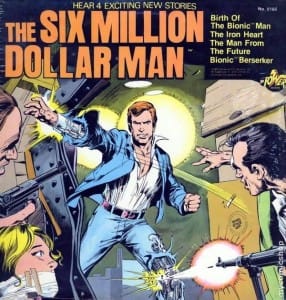 I used my grandparents’ stereo for another important thing – listening to the adventures of folks like Superman and Spider-Man and the Six Million Dollar Man on book-and-record sets. Remember those? Back in the 70s, Marvel and DC put out oversized comic books with LP records. These were dramatized versions of the comics, complete with actors, sound effects and music. You could follow along in the comic book while you listened.