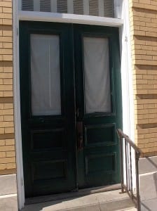 On one trip to Lenox, I went to the Hagyard Building with a mission. My cousin Denise (whom I refer to as my Aunt Denise) told me that the front door of the Hagyard Building still bore the doorbell nameplates of Bernard Flanders and John Coughlin, my grandfather and great-uncle, respectively. She asked whether I would try to get them off the building, and of course I agreed.